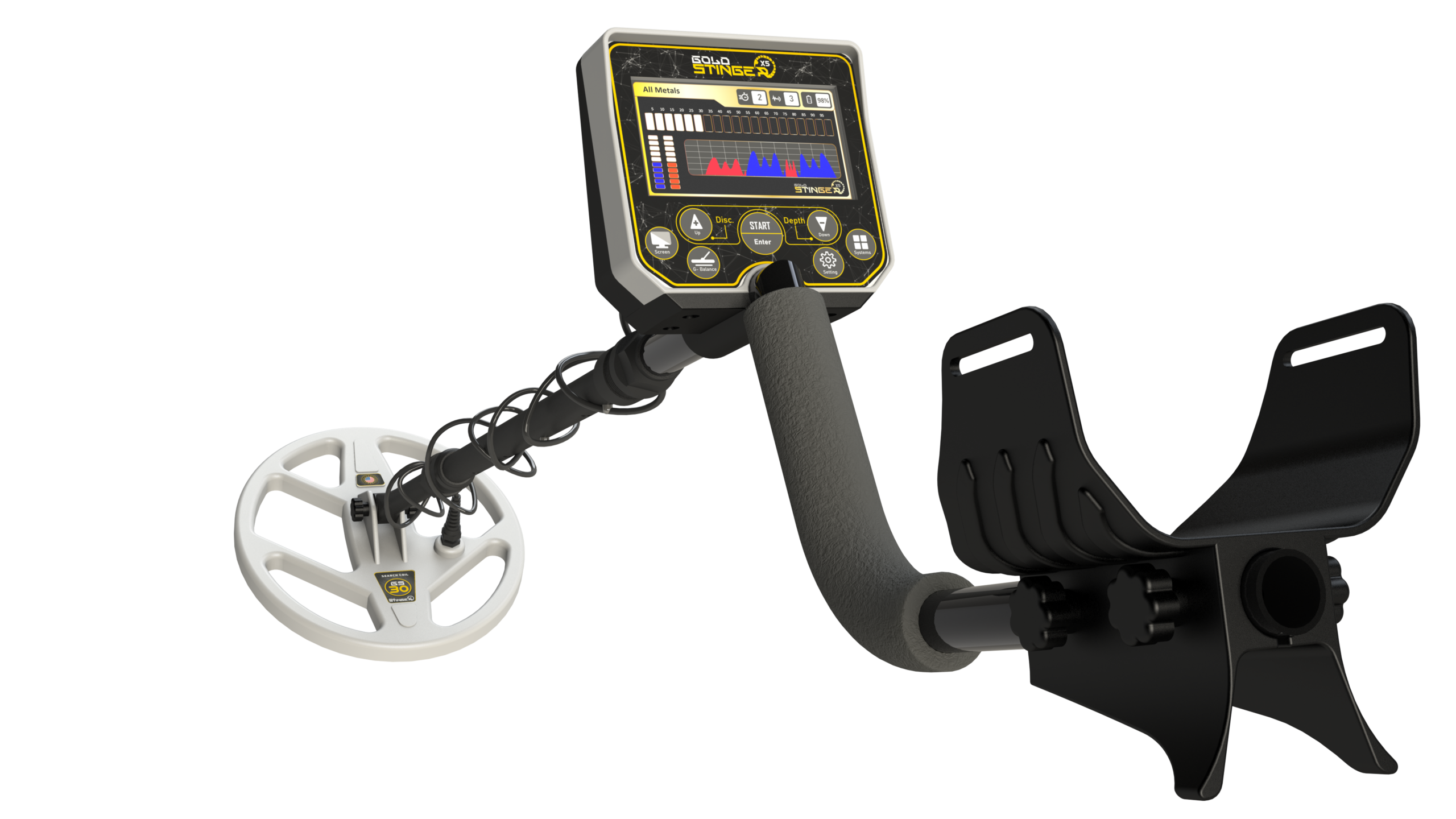- Discrimination Mode: حالت تفکیک فلزات، مناسب برای کاوش طلا و گنجهای عمیق